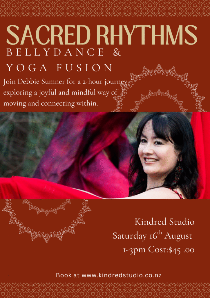 Sacred Rhythms is a 2-hour fusion of Middle Eastern dance and yoga—a space to reconnect with your body’s innate wisdom through fluid movement, breathwork, mudra, and meditation. Blending the flowing grace of bellydance with the grounding practices of yoga, this workshop invites you to explore your inner rhythm and cultivate embodied presence.